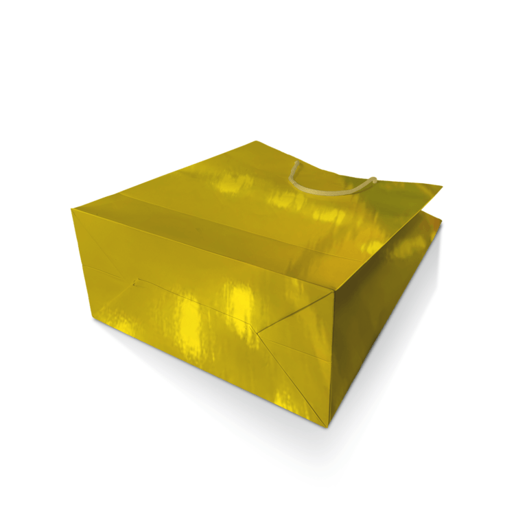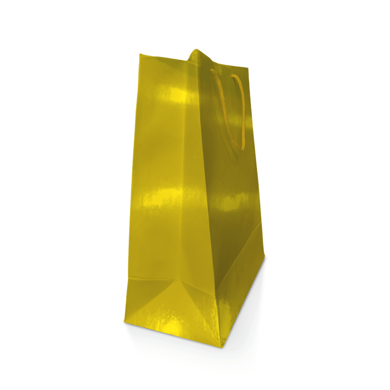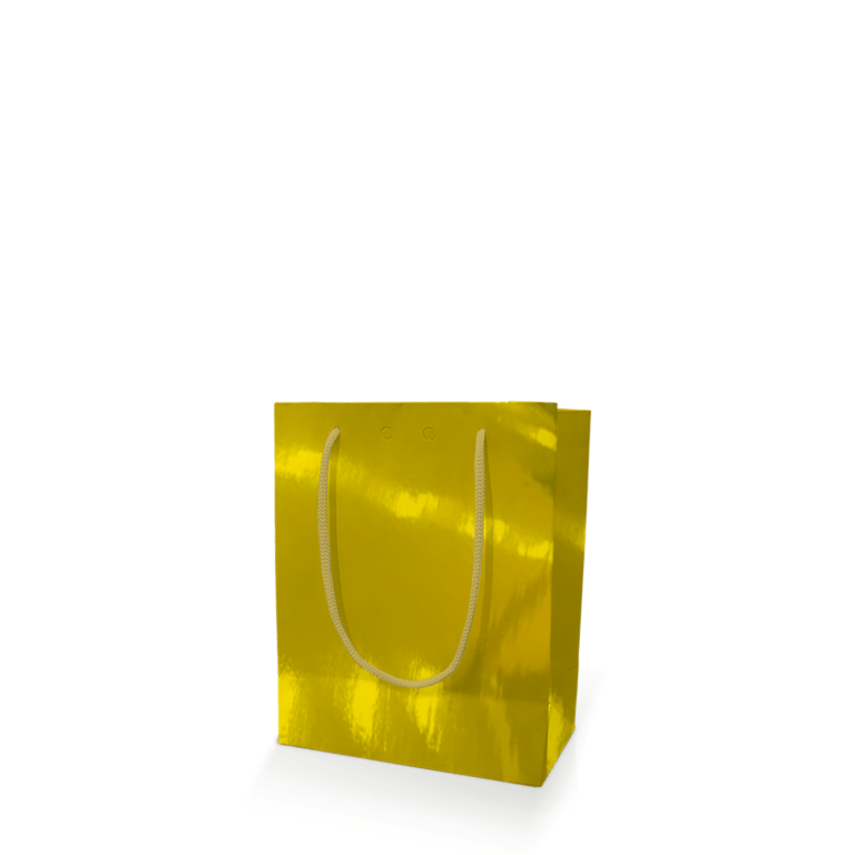 Sacola de papel dourada premium 14x7x17,5cm ideal para presentes e lojas. Elegante, resistente e perfeita para agregar sofisticação aos seus produtos.